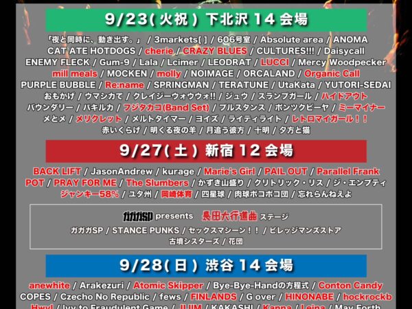 ■イベント詳細 ※出演日 2025年9月23日(火・祝) 「TOKYO CALLING 2025 – 10th Anniversary -」 会場:東京・下北沢14会場 時間:開場12:00 / 開演12:3…