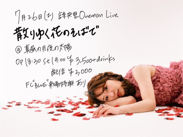 ■イベント詳細 2025年7月26日(土) 詩央里Oneman Live「散りゆく花のそばで」 会場:東京・真昼の月 夜の太陽 時間:開場18:30 / 開演19:30 料金:3,500円+1D 配信:2,000円 ■出…